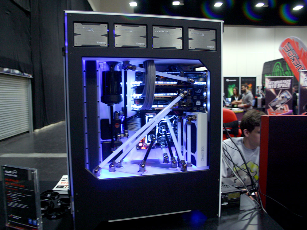 And the completely ridiculous Team Dignitas machine, featuring tr-SLI GTX 780s and eight RAID 0 configured Kingston HyperX SSDs. I'd love to know how quick this thing boots up.