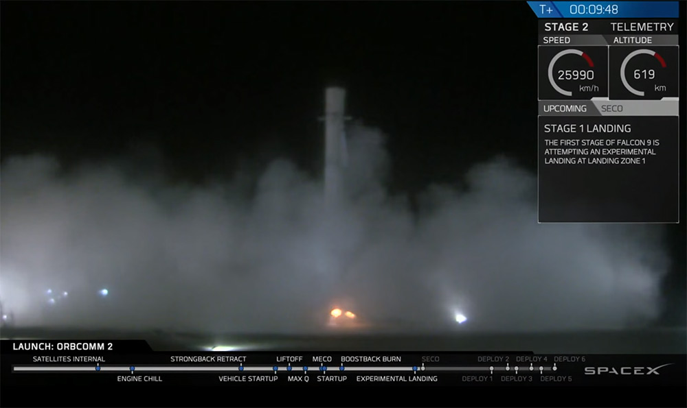 Although the above webcast shows the full 45 minute webcast covering the pre-launch preparations, stage separations and the landing, for those that just want to see the first stage touch-back down, Space X isolated that footage for the sizzle reel: [yframe url='http://www.youtube.com/watch?v=ZCBE8ocOkAQ']