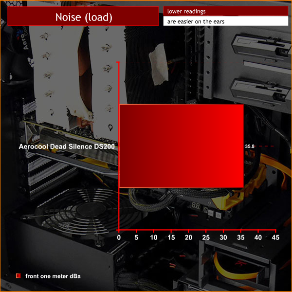The Aerocool Dead Silence DS200 lives up to its name and is very quiet indeed registering around 36 dBA. Those heavy noise deadening side panels clearly do a good job and the subtle vents in the front panel help keep the noise levels nice and low.Aerocool has delivered the goods with the Dead Silence DS200, making only a few minor compromises. On the one hand the DS200 is very quiet while on the other the cooling could be a little more effective. This seems like a sensible trade-off and I feel that Aerocool has delivered a PC case that will suit the mainstream customer.