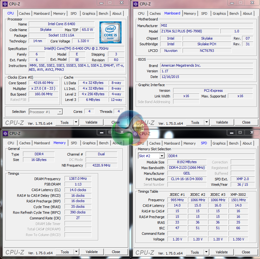 Our highest stable result was a CPU and Cache frequency of 4.32GHz using a 160MHz BCLK. We were also able to use a 2773MHz DDR4 frequency with this BCLK level. That's a 60% overclock from the i5-6400's 2.7GHz base frequency.