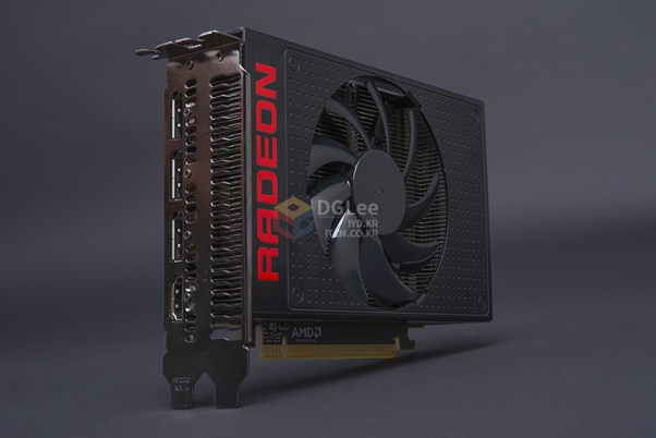 The front of the card is something we have seen before. The card appears to be similar in length to the Fury X, though rather than an all in one liquid cooler system, we have a single fan cooler instead. There appears to be no backplate on the card, so those who would like one will need to seek out a third-party offering.