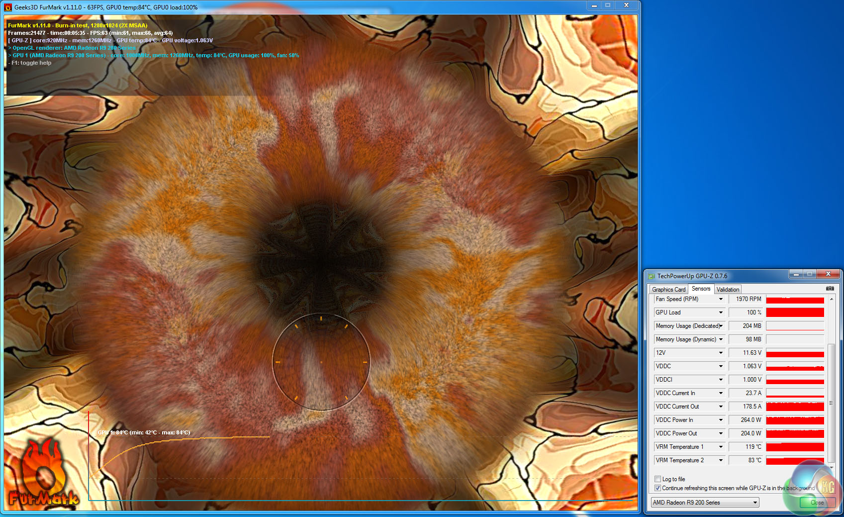 We noticed a readout at 119c when running Furmark. We never include Furmark results as ‘real world' indicators however and when gaming this temperature dropped to 110c.