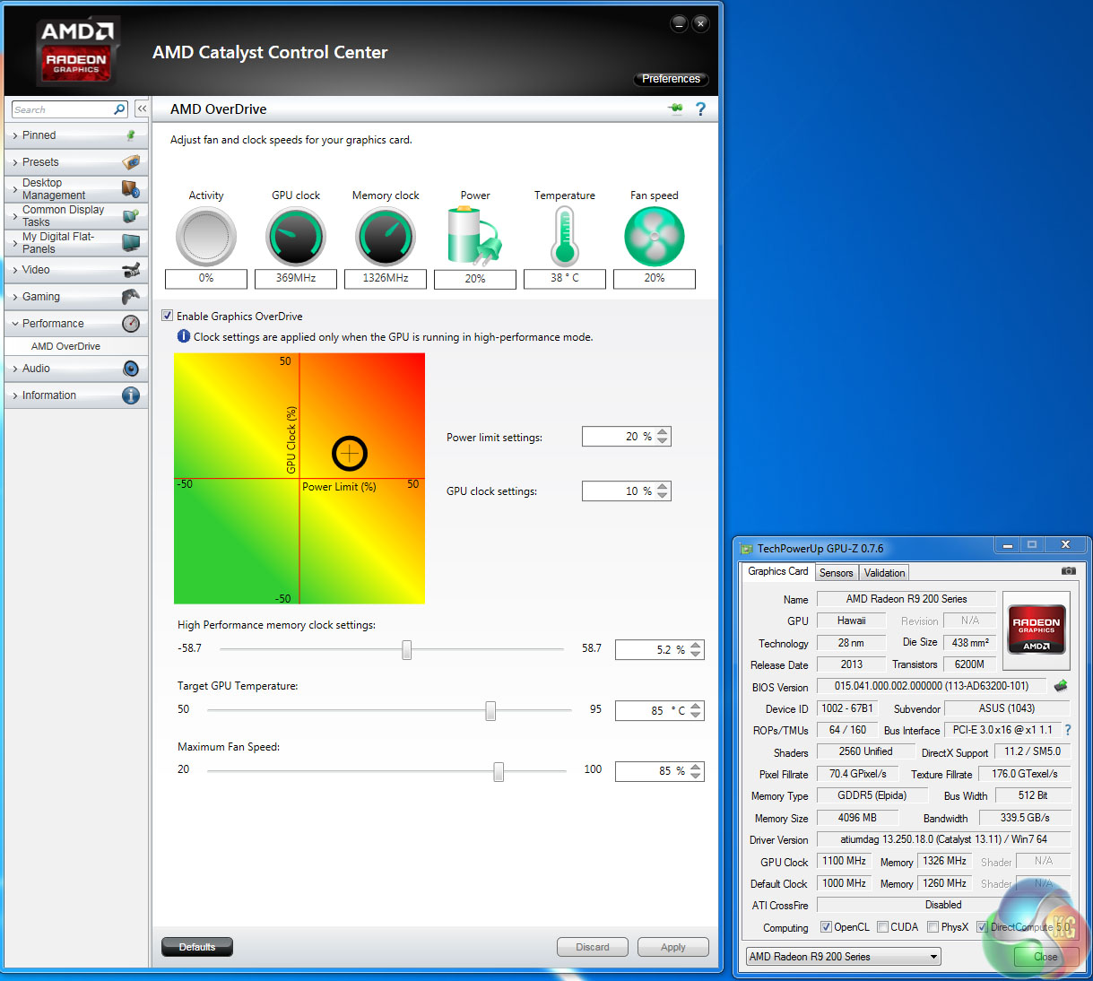 To overclock today, we used the dedicated overclocking tools within the latest version of AMD’s Catalyst Control Center. We also tested with Asus GPU Tweak, but the end results were identical.