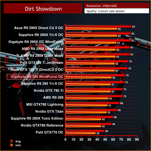A very demanding benchmark – however we see the overclocked R9 290 cards putting in a good showing, right beside the reference 290X solutions.