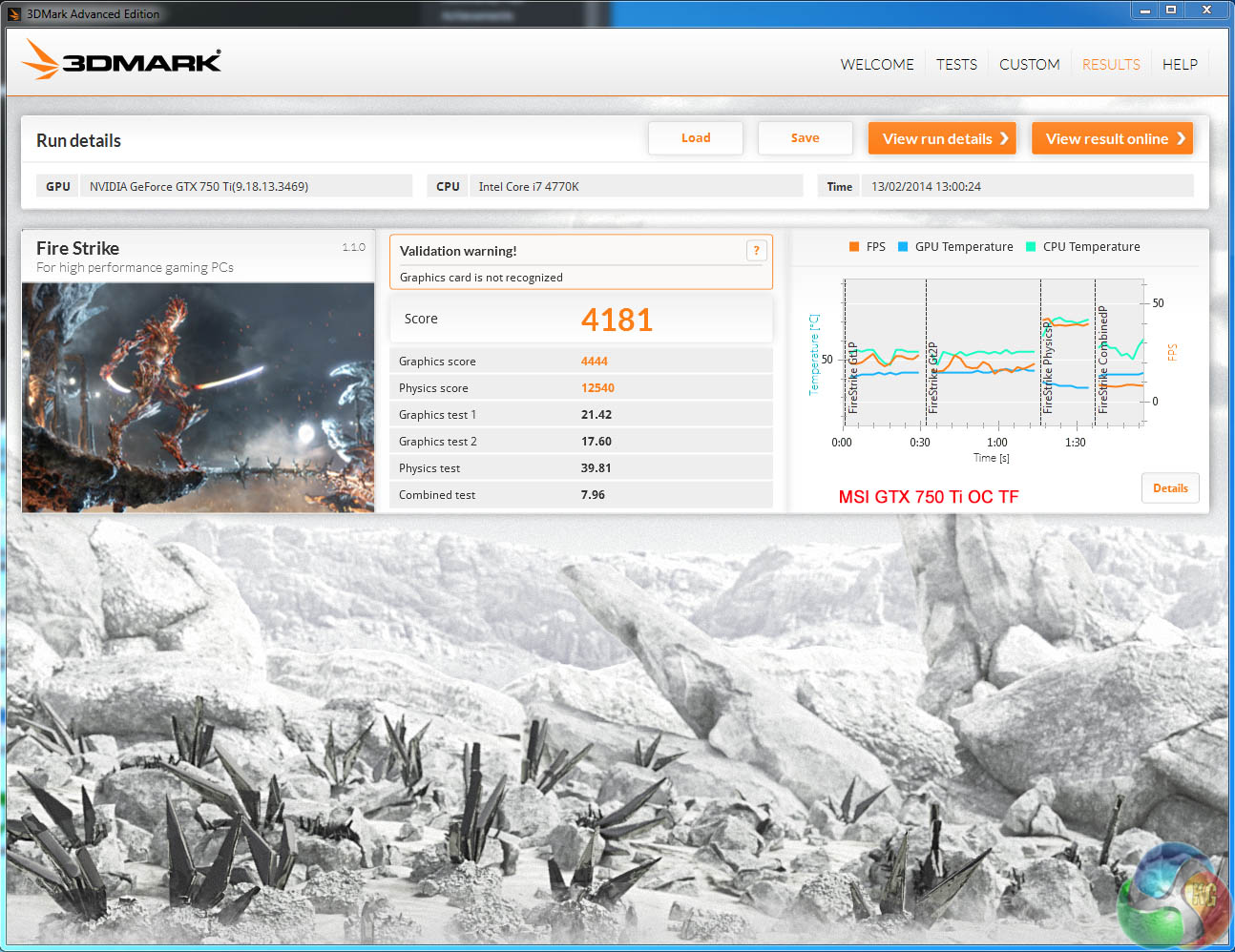 The MSI GTX 750 TI OC is an extremely quiet running card, breaking new records in our testing, and the maximum thermal reading of 49c when gaming is one of the best results we have ever seen in our labs. For those people building a system in a new, space restricted HTPC chassis, power demand, noise and heat output are critical areas to take into consideration.