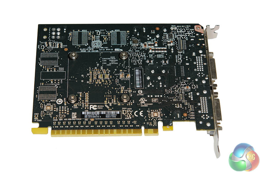 By comparison, the reference Nvidia GTX750 Ti (above) has dual DVI ports, and a mini HDMI connector.