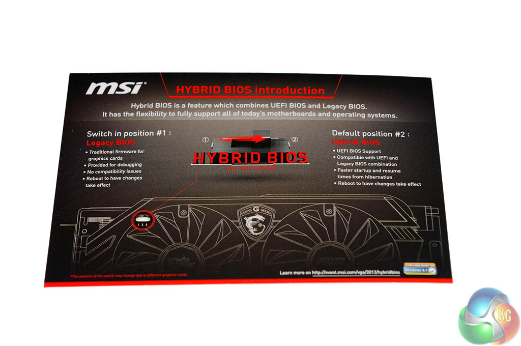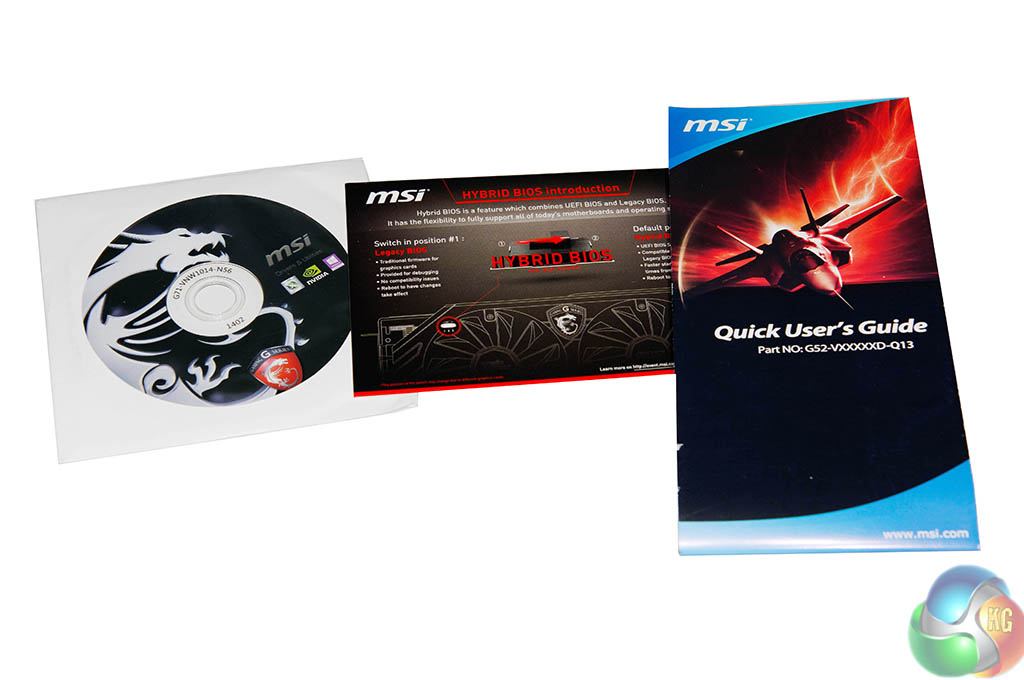 Inside, the accessories are minimal. A driver disc, quick users guide and some information relating to the UEFI BIOS switch on the card.