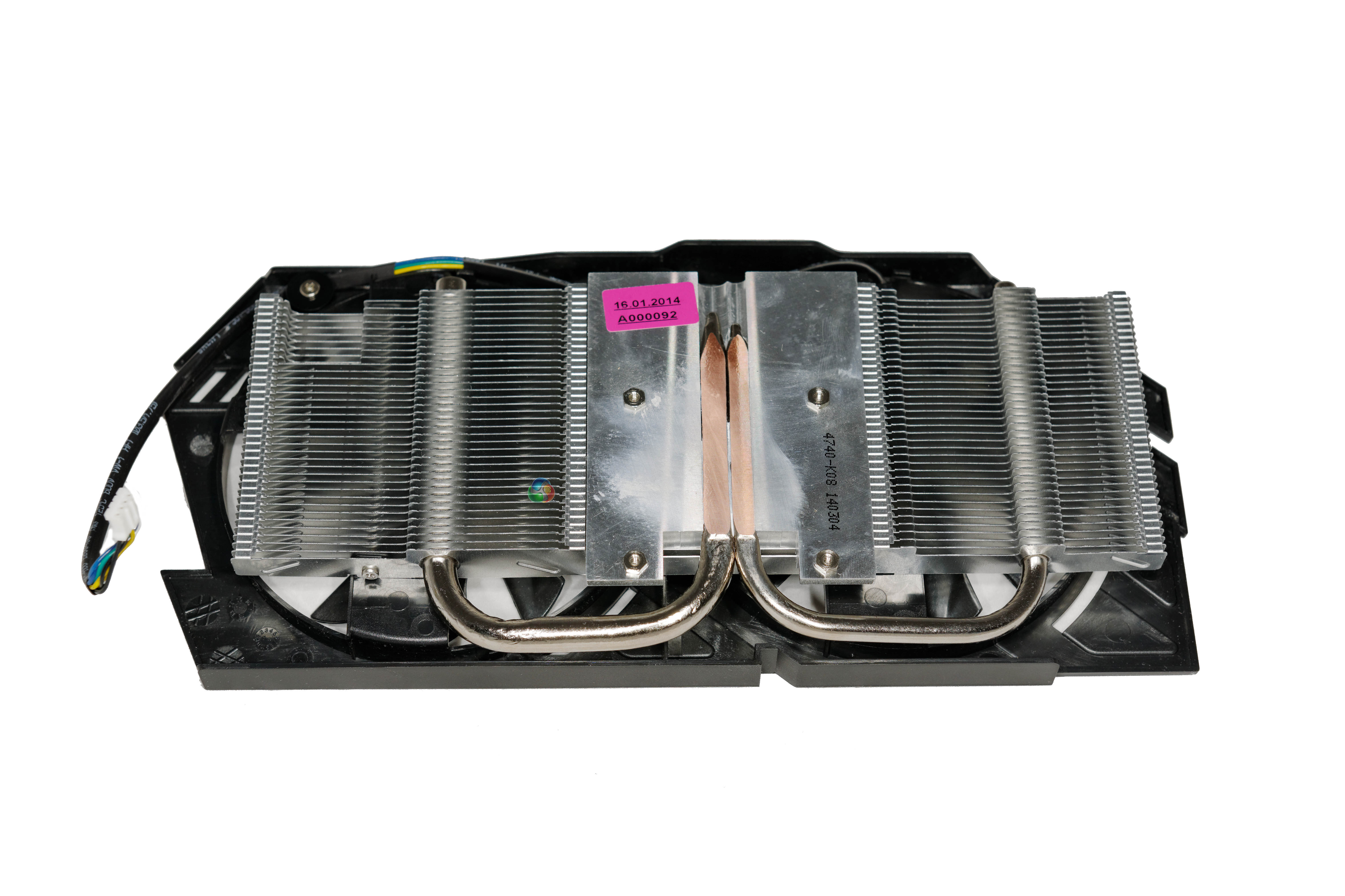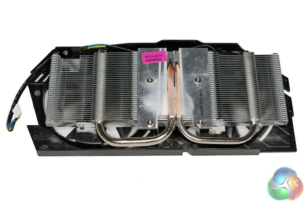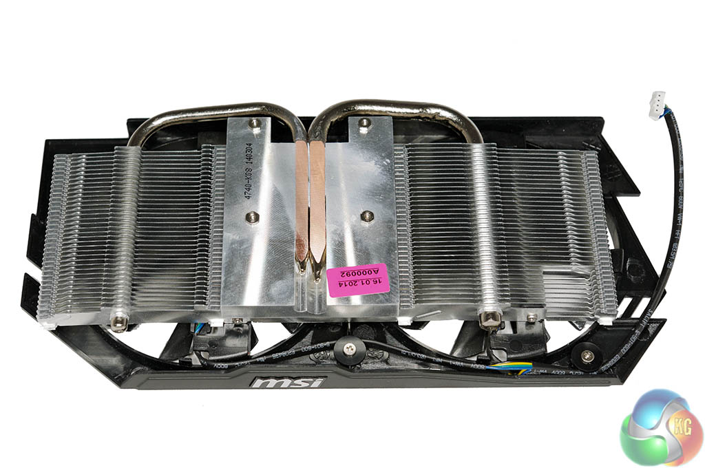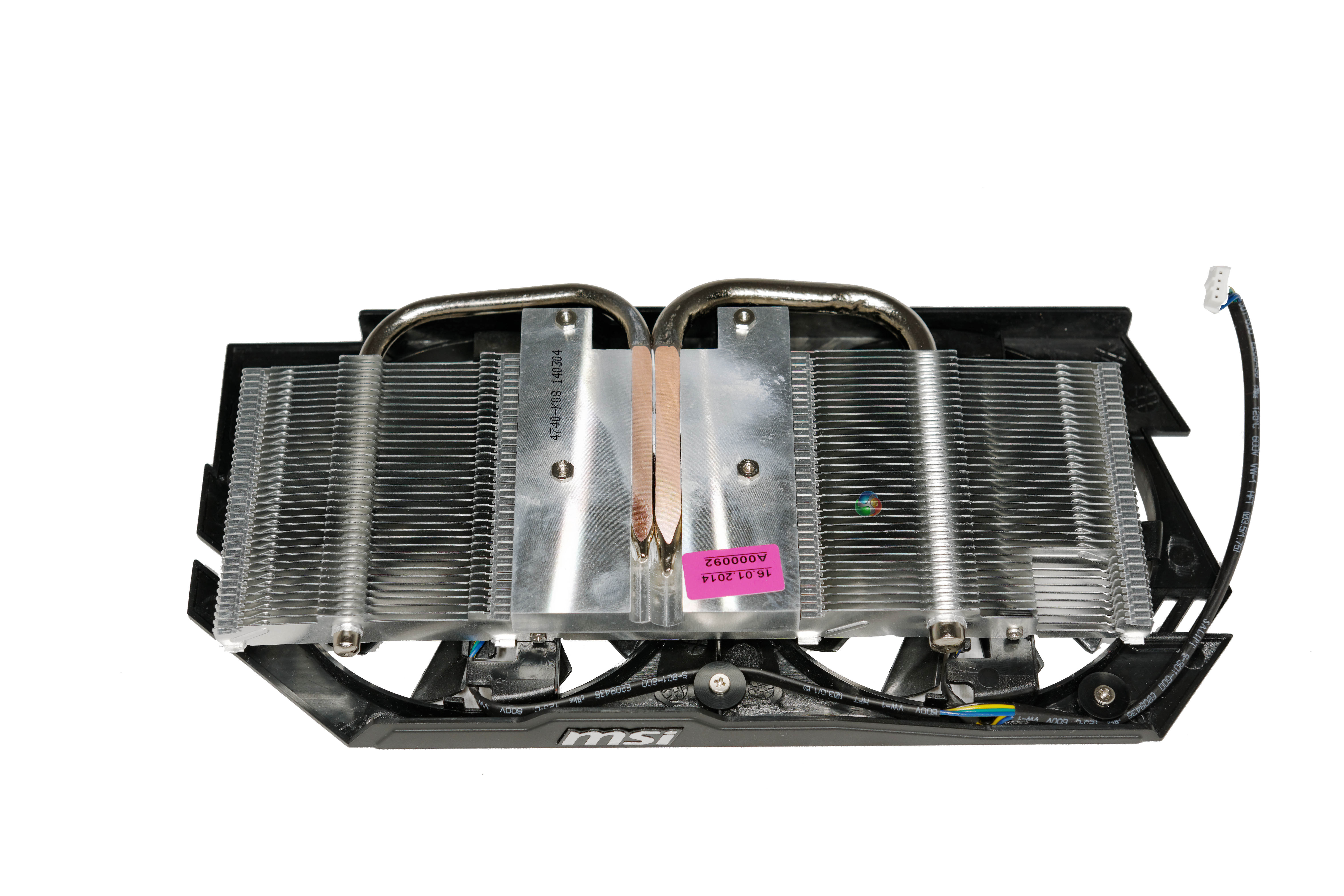 The MSI Twin Frozr cooler comprises two direct touch copper heat pipes which run into two separate racks of aluminum fins on either side of the core.