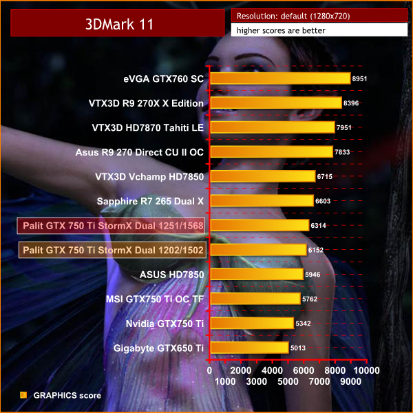 The additional overclock pushes performance a little higher, from 6,152 points to 6,314 points.
