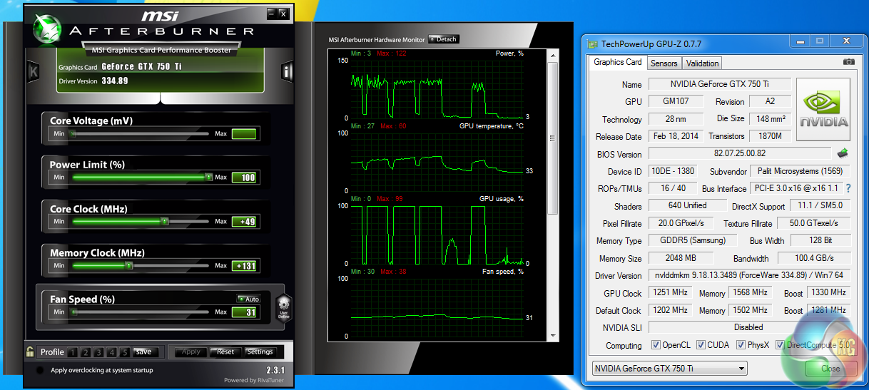 To overclock the Palit GTX750 Ti StormX Dual 2GB, we used the latest version of MSI Afterburner, which is based on Riva Tuner.