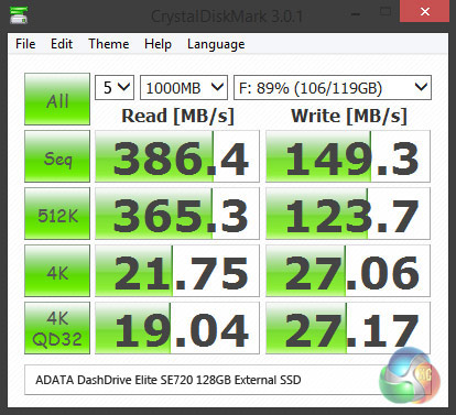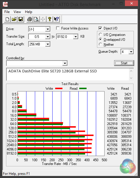 ADATA claims a peak of 400MB/sec read and 300MB/sec write, which is very fast for an external device costing less than £100, but how accurate is that claim?