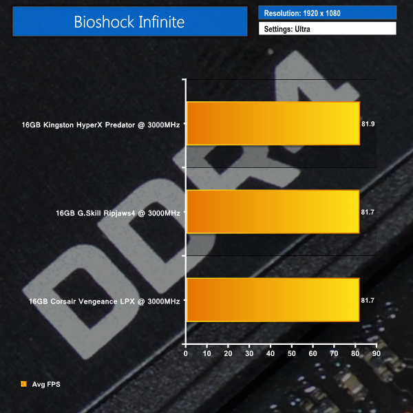 Irrelevant of how minor the differences are, Kingston's HyperX Predator consistently manages to outperform the G.Skill and Corsair parts by a small margin. Grouping of the results is within 1% for 3DMark and 0.25% for Bioshock Infinite, hence testing errors may have an effect on the results.