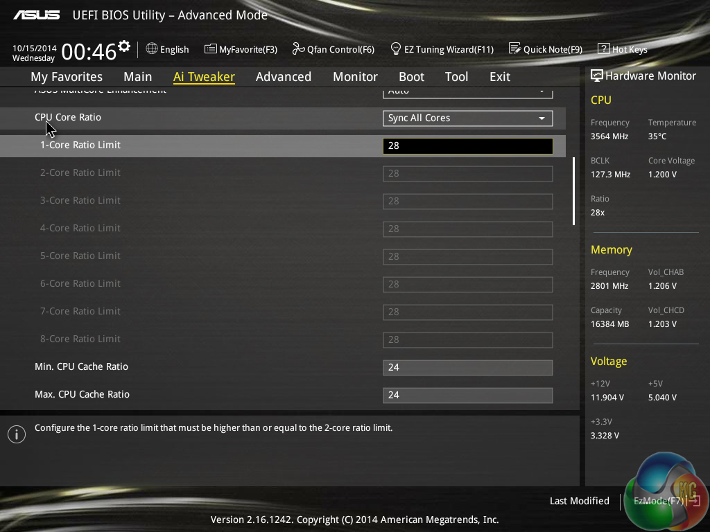 As the 100MHz base clock on Haswell-E only supports memory multipliers up to an operating frequency of 2666MHz, 3000MHz is reached by using a 125MHz base clock, 100:133 BCLK:DRAM ratio, and an 18x memory multiplier. That gives a 3GHz memory speed while maintaining the CPU, cache, and linked frequencies at the default (multi-core turbo) levels.