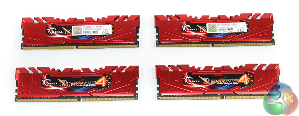 Today's G.Skill competitor comes from the company's Ripjaws product series. Designated Ripjaws 4 (presumably to outline the DDR4 memory chips), the four 4GB DIMMs combine to form a 16GB quad-channel kit.