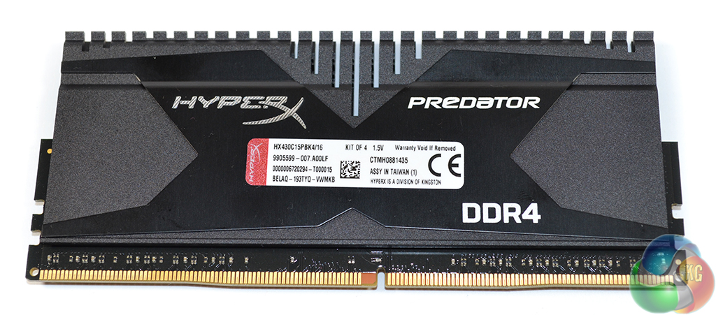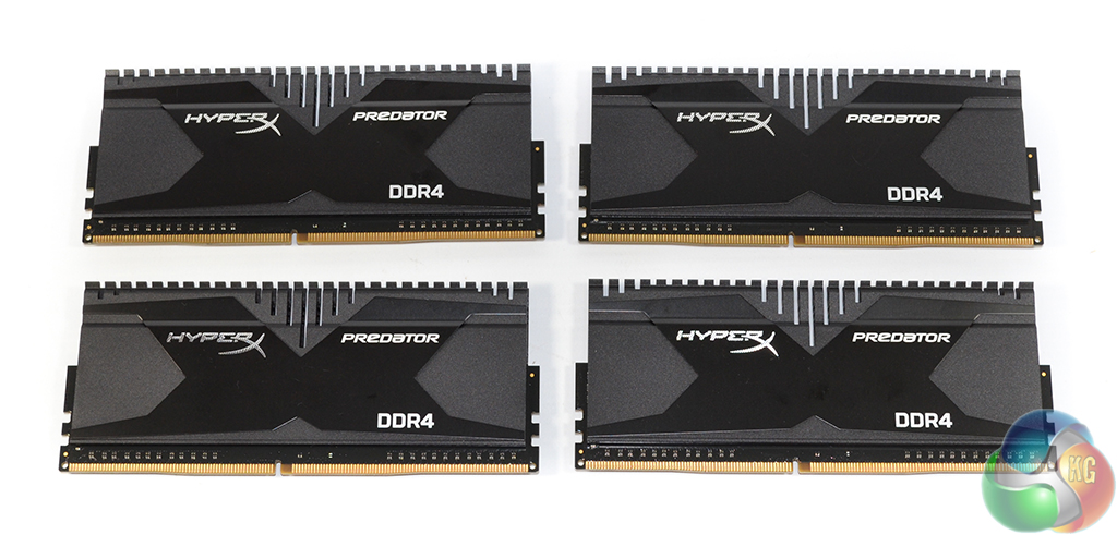 Given flagship status in Kingston's DDR4 memory catalogue, the HyperX Predator modules use four 4GB DIMMs to provide a 16GB total capacity and quad-channel capability.