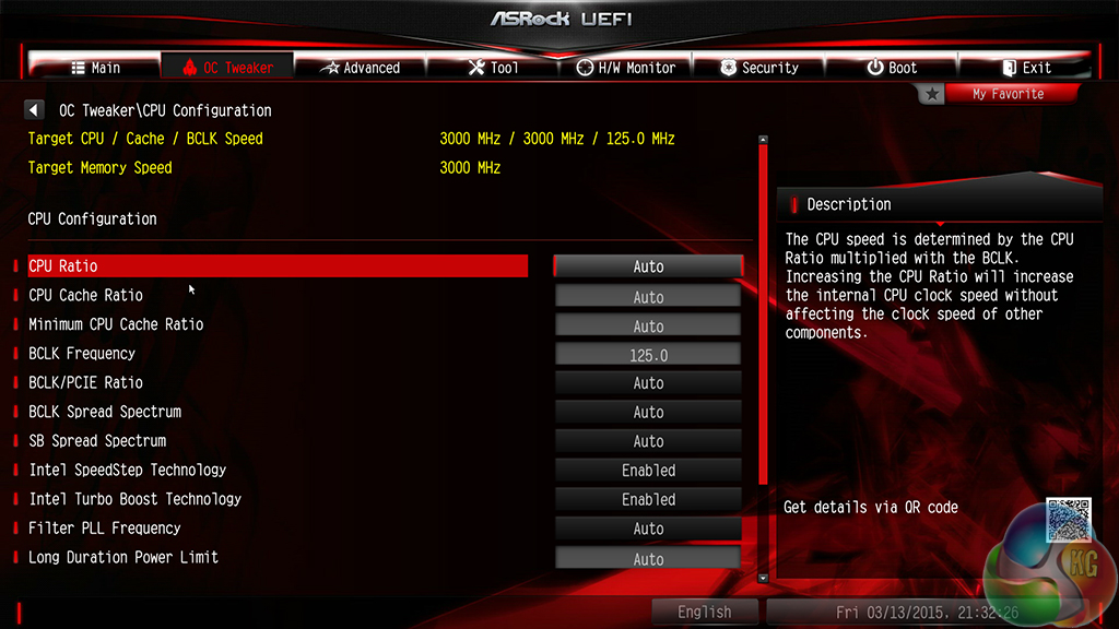 The standard set of parameter and ratio settings are provided under the CPU Configuration section. ASRock also adds a CPU TJ Max input which is a unique setting allowing users to change their processor's thermal throttling temperature. Approach this setting with caution and appreciation for the involved risks.
