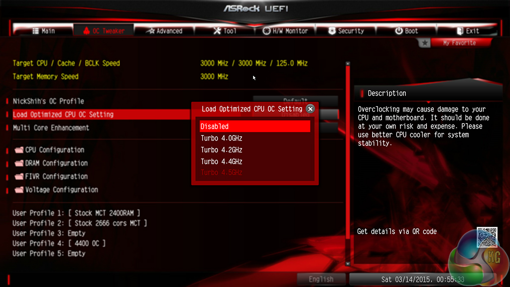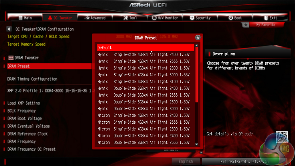 A large number of pre-tweaked (presumably by Nick Shih) overclocking profiles are included in the memory section. I would advise caution before loading any of the profiles as a test to see what your memory is capable of – anything more than 1.50V is particularly high for DDR4 and should be approached with caution.