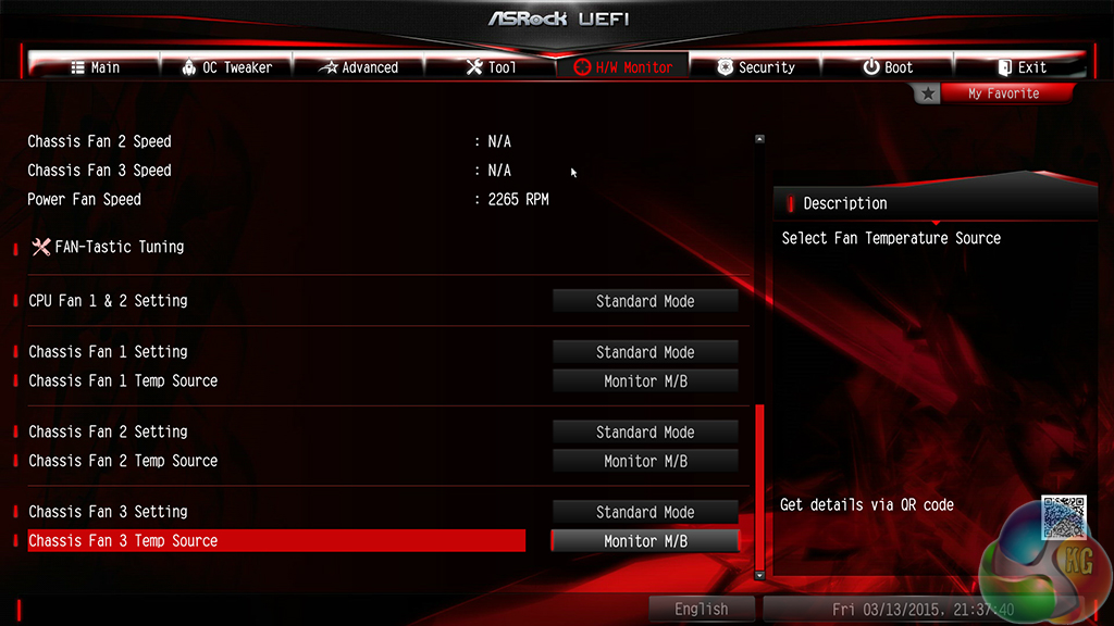 There are two ways of setting fan speeds in ASRock’s UEFI. Users can either select from pre-defined profiles, or they can fine-tune their own custom fan speeds. There’s the old way of doing this – by selecting the relevant choices from multiple drop-down lists. Or there’s ASRock’s modern FAN-Tastic Tuning visual tool.