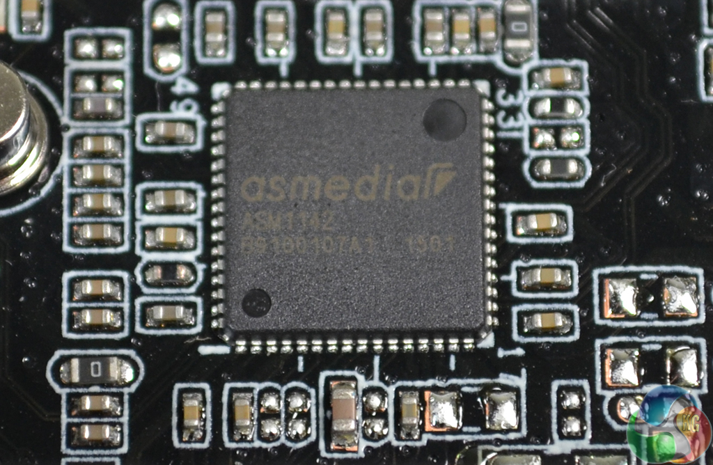 In a similar fashion to MSI, Asus deploys the pair of USB 3.1 ports by way of ASMedia's PCIe 2.0 x2-fed ASM1142 host chipset. We have been advised that ASMedia's solution seems to be the only one currently at a sufficient market readiness level to be shipped out on motherboards. Competing silicon from the likes of VIA and Renesas looks to be a little further down the line.