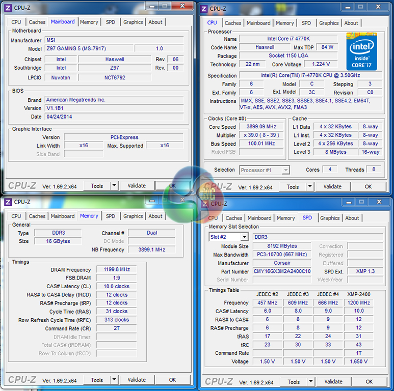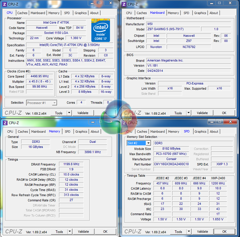We will outline the performance increases that can be obtained from using the MSI Z97 Gaming 5 motherboard to overclock our system. Our overclocked processor frequency was 4.5GHz and memory speed was 2400MHz.