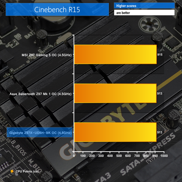 As a performance comparison, we have included the overclocked results from two other Z97 motherboards. The maximum overclocked configuration achieved with each board was a 4500MHz (45 x 100MHz) processor frequency and 2400MHz CL10 memory speed.