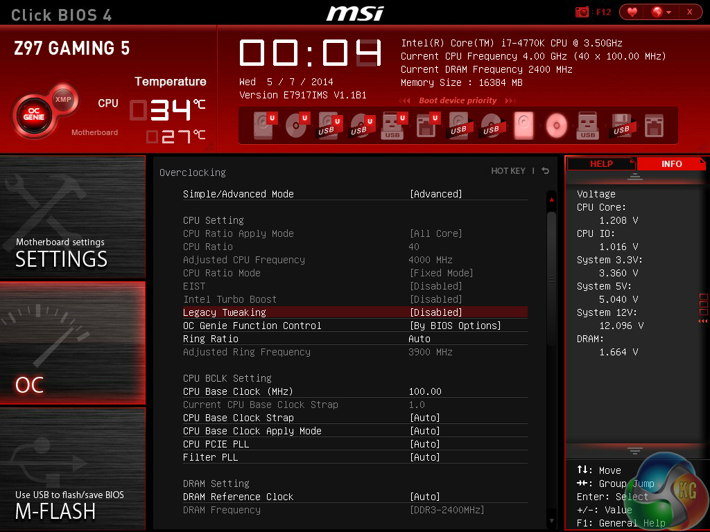 Firstly, we are pleased to report that our Leetgion Hellion mouse worked to its usual standard in the MSI Z97 Gaming 5 motherboard’s UEFI BIOS.