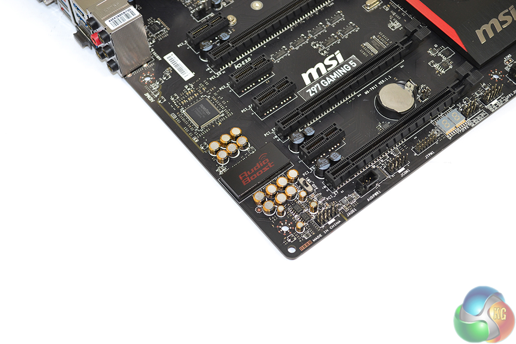 Audio Boost 2 is used on the Z97 Gaming 5 motherboard. MSI employs a discrete PCB, Nichicon capacitors, a pair of Texas Instruments OPA1652 headphone amplifiers, and the aforementioned supplementary power connector as part of its Audio Boost 2 system. The power connector acts to ensure that sufficient voltage levels reach USB headsets and DACs.