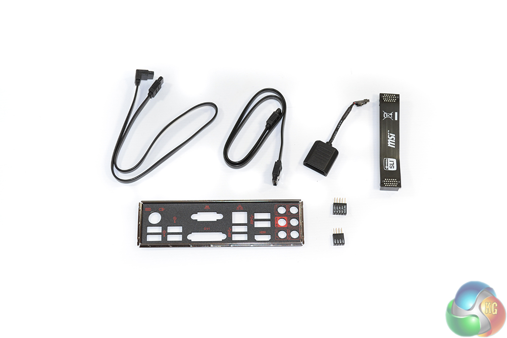 MSI includes only two SATA cables which is a representation of this board's price point. A black IO shield and two convenient M-connectors also make the package. Given its emphasis on appearance, MSI supplies the Z97 Gaming 5 with a black SLI cable which is far better looking than the ugly brown alternative.