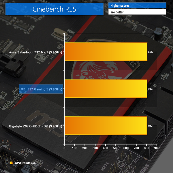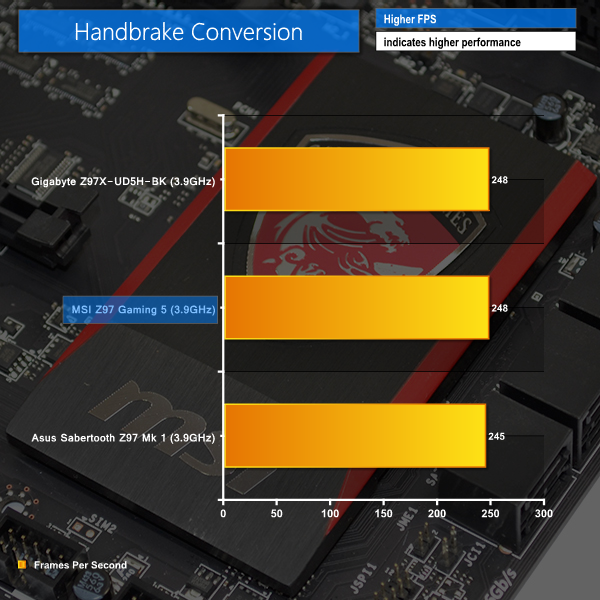 CPU-heavy test results show the MSI Z97 Gaming 5 to be delivering competitive performance.
