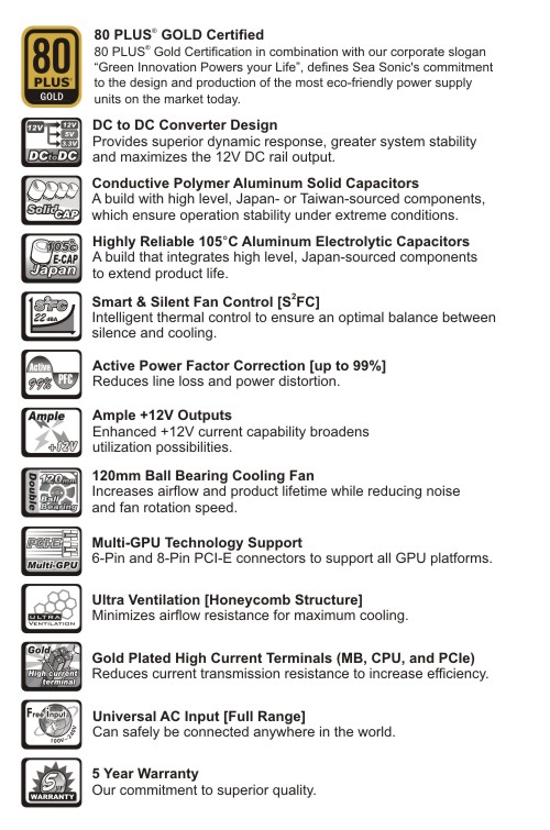 Seasonic told us that ‘The S12G Series is the newest addition to Seasonic’s families of retail products. The S12G Series is designed to support Intel’s Haswell processors, features standard all in one cabling with more SATA cables and is an affordable solution for a wide range of applications. It meets the demands of users who are looking for reliable 80 PLUS Gold performance for gaming and overall usage.”