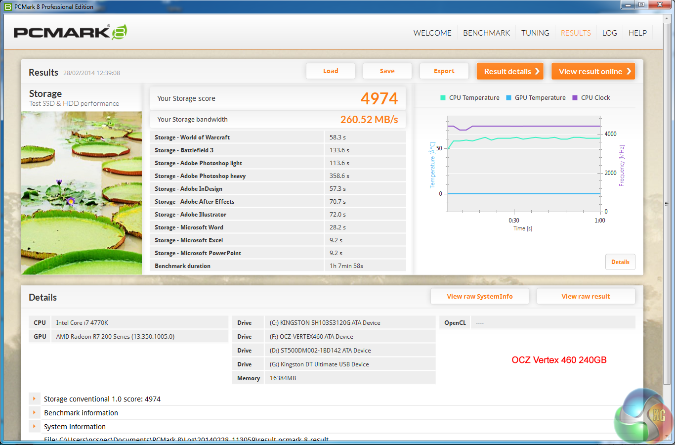 A good overall score from the OCZ Vertex 460 240GB drive, scoring just under 5,000 points.