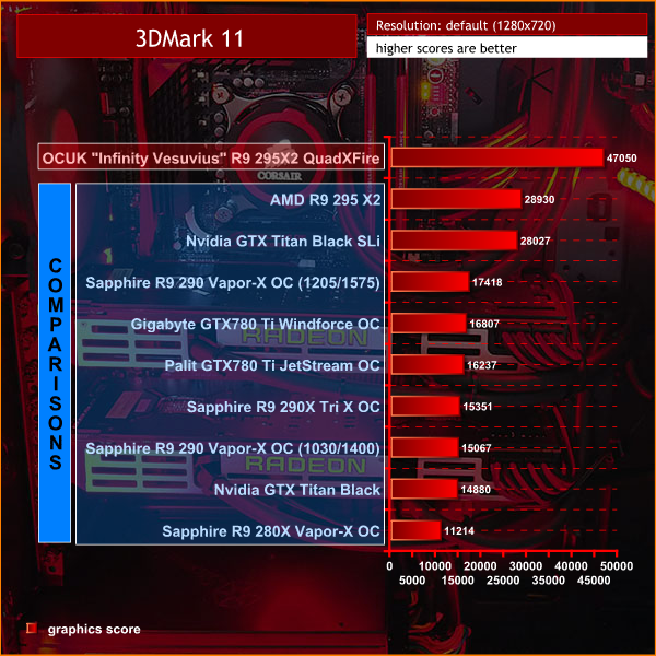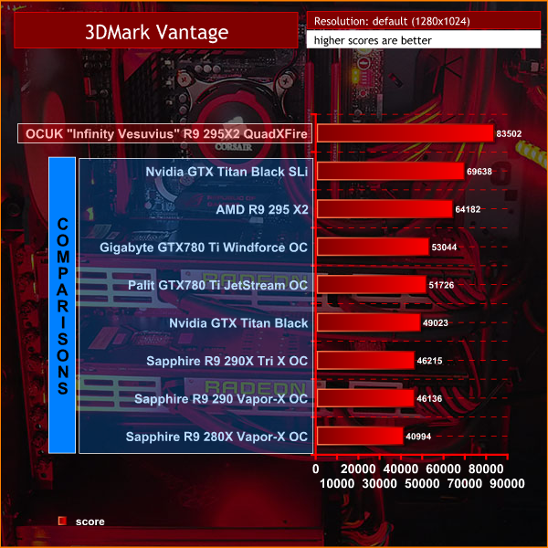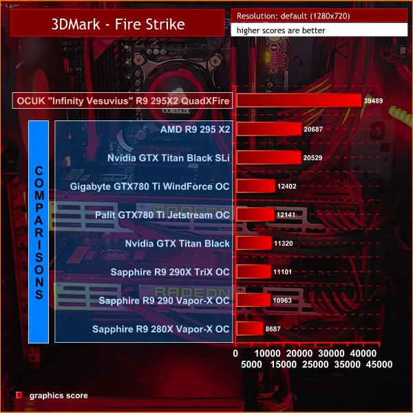 The OverclockersUK “Infinity Vesuvius” R9 295X2 QuadXFire System is the fastest system we have reviewed by a clear margin. This is the Bugatti Veyron of gaming systems. The Infinity Vesuvius has actually broken several records in our labs this week – but we will get to those shortly.