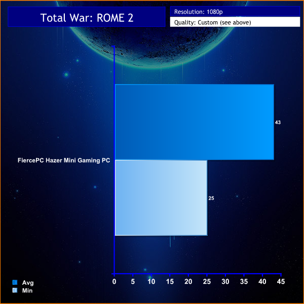 While many will balk at the £4,000 price tag, it is worth pointing out that more than half the cost of the system is due to the adoption of two AMD R9 295 X2 graphics cards. One of these cards is enough to power any game at Ultra HD 4K, but adding another can give a boost to frame rates, and even allow for higher image quality settings as shown with our Total War Rome 2 testing today.
