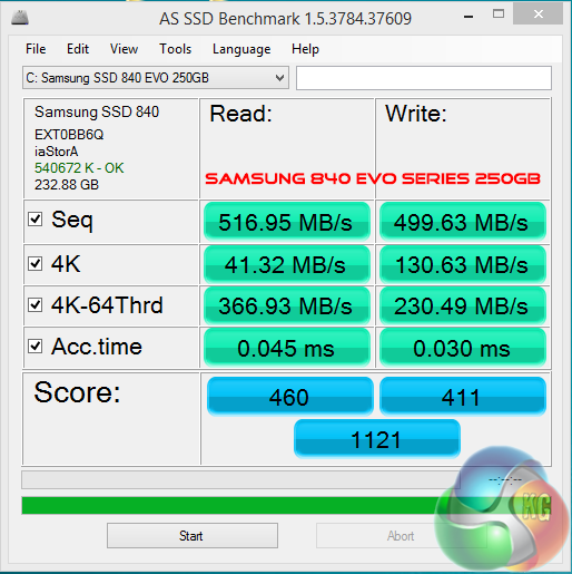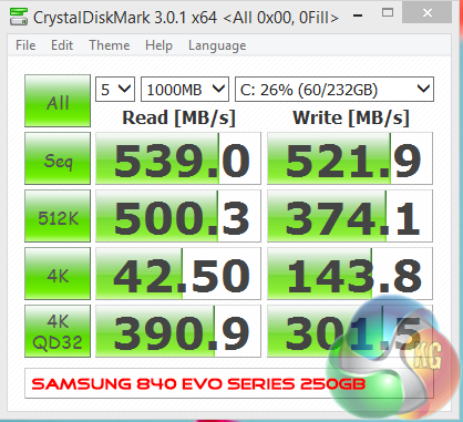 Crystalmark is a useful benchmark to measure theoretical performance levels of hard drives and SSD’s. We are using V3.0.1 x64. We test the Samsung Solid State Drive, and the Seagate 1TB Barracuda hard drive.