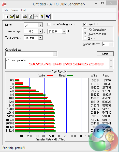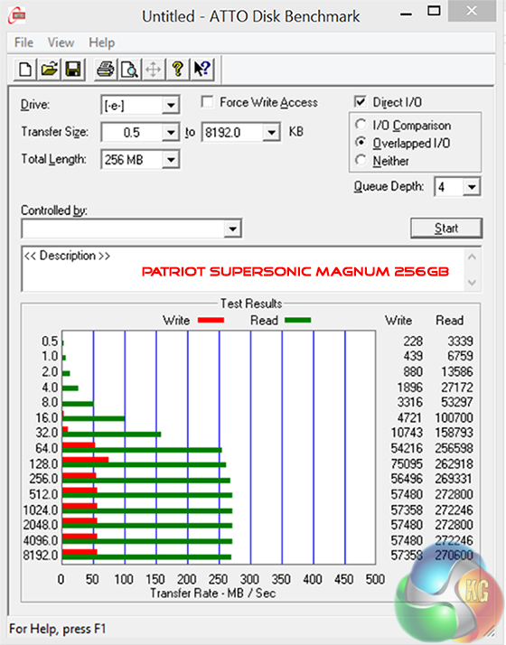 ATTO never scores as well with this particular drive, although the results are good – hitting around 270 MB/s in the read test.