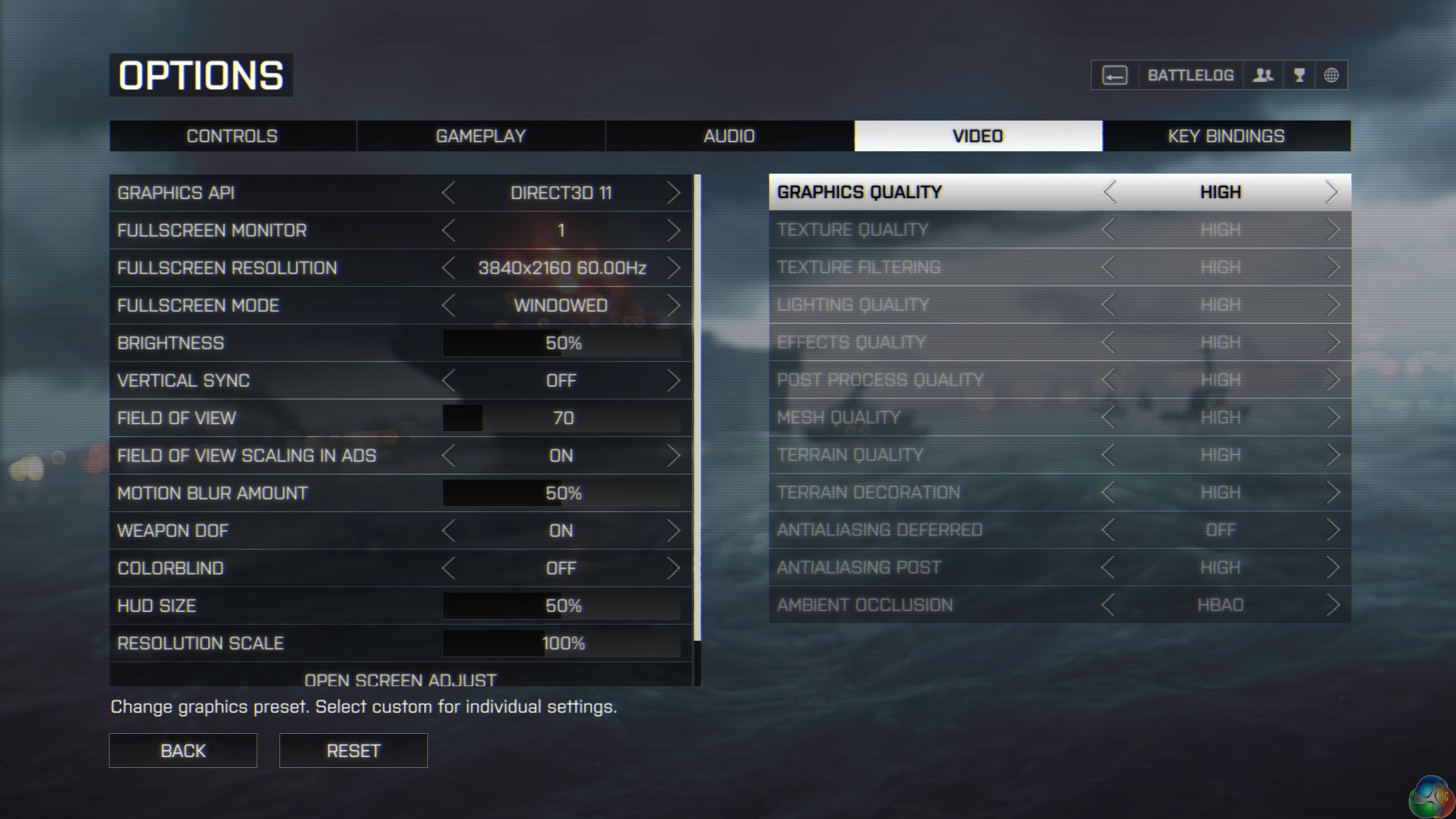 We test at Ultra HD 4K with HIGH image quality settings – shown above.