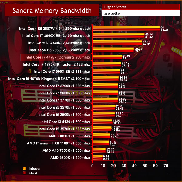 Our review sample of the Infinity Vesuvius shipped with the 4770k running at 4.7ghz, although OCUK are clear to state that depending on the specific processor, speeds may be limited to 4.6ghz – it will however never be clocked lower than this. The 16GB of Corsair 2,200mhz memory is running at timings of 10-12-11-28.