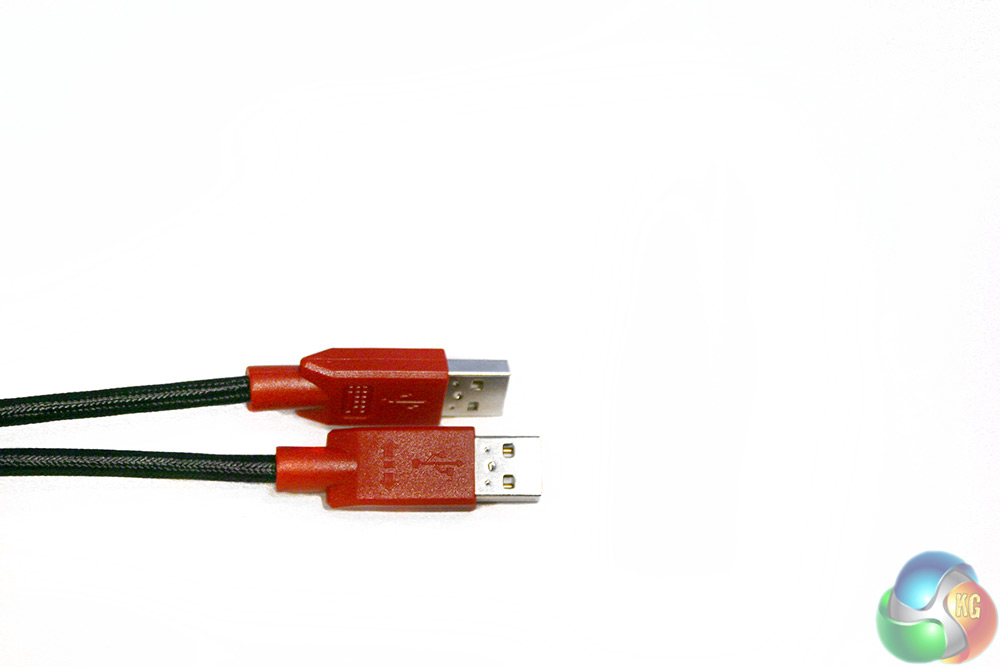 The cable has a thick, black braid covering so should not be torn or chewed through by pets too easily (RIP my brown switch mechanical) and a pair of red USB connectors.