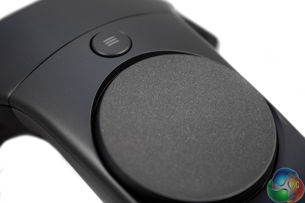 There are two other buttons, one above and one below the trackpad. The former acts as an in-game menu button, pulling up volume controls, restart and quit functions, while the other opens up the Steam VR overlay and menu system.
