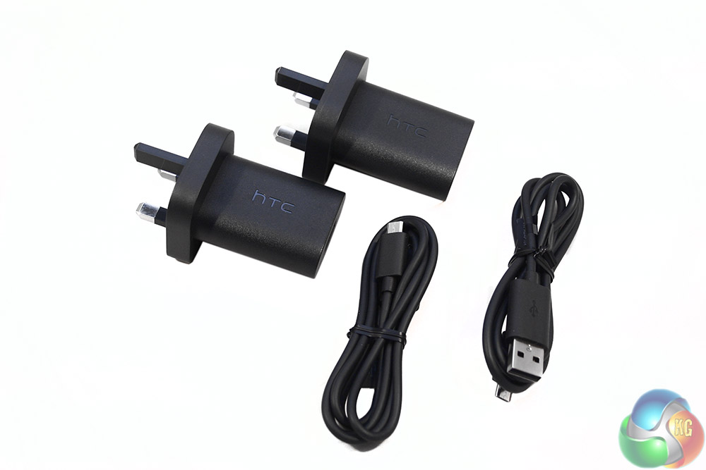 The only accessories that come with the Vive wand controllers are a pair of USB chargers with micro-USB to USB cables. These are for charging the controllers or connecting them up to your PC for firmware updates.