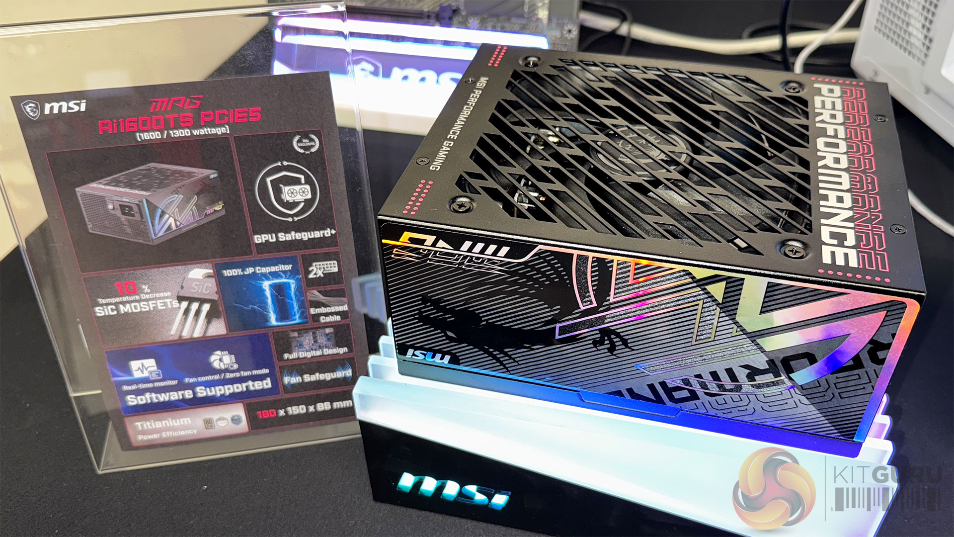 At the base of the system sits the MEG Ai1600T PCIE5 PSU. Rated for up to 1,600W with 80 Plus Titanium efficiency, it uses a fully digital design with SiC MOSFETs, reducing operating temperatures by around 10 percent compared to conventional silicon solutions.