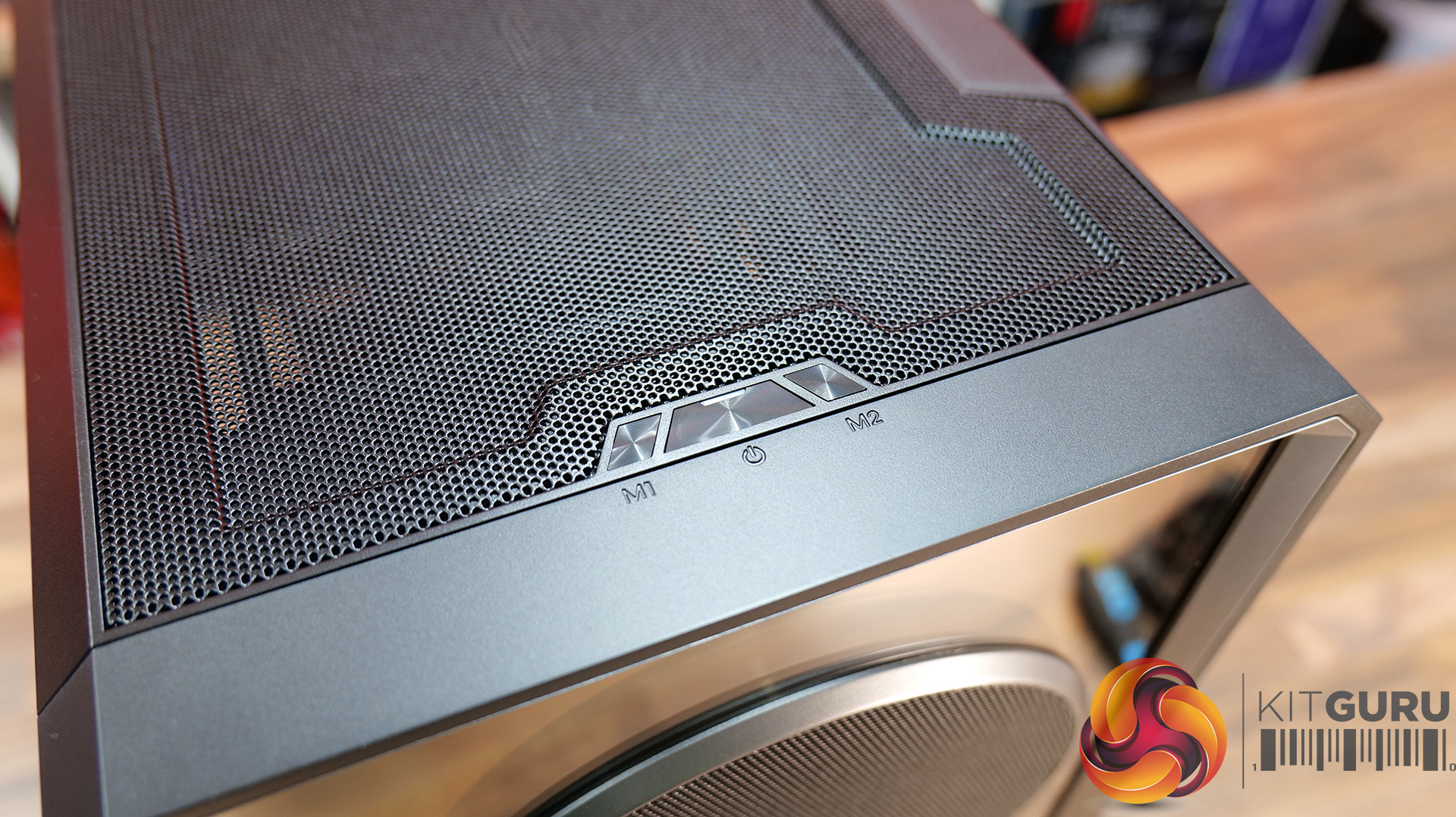 - Front I/O: 2 x USB 3.0 Type-A, 1 x USB 3.2 Type-C, 1 x Audio / Microphone Combo Jack, 1 x Power button, 1 x M1 Front Panel Lighting Control Button, 1 x M2 Fan Lighting Control Button