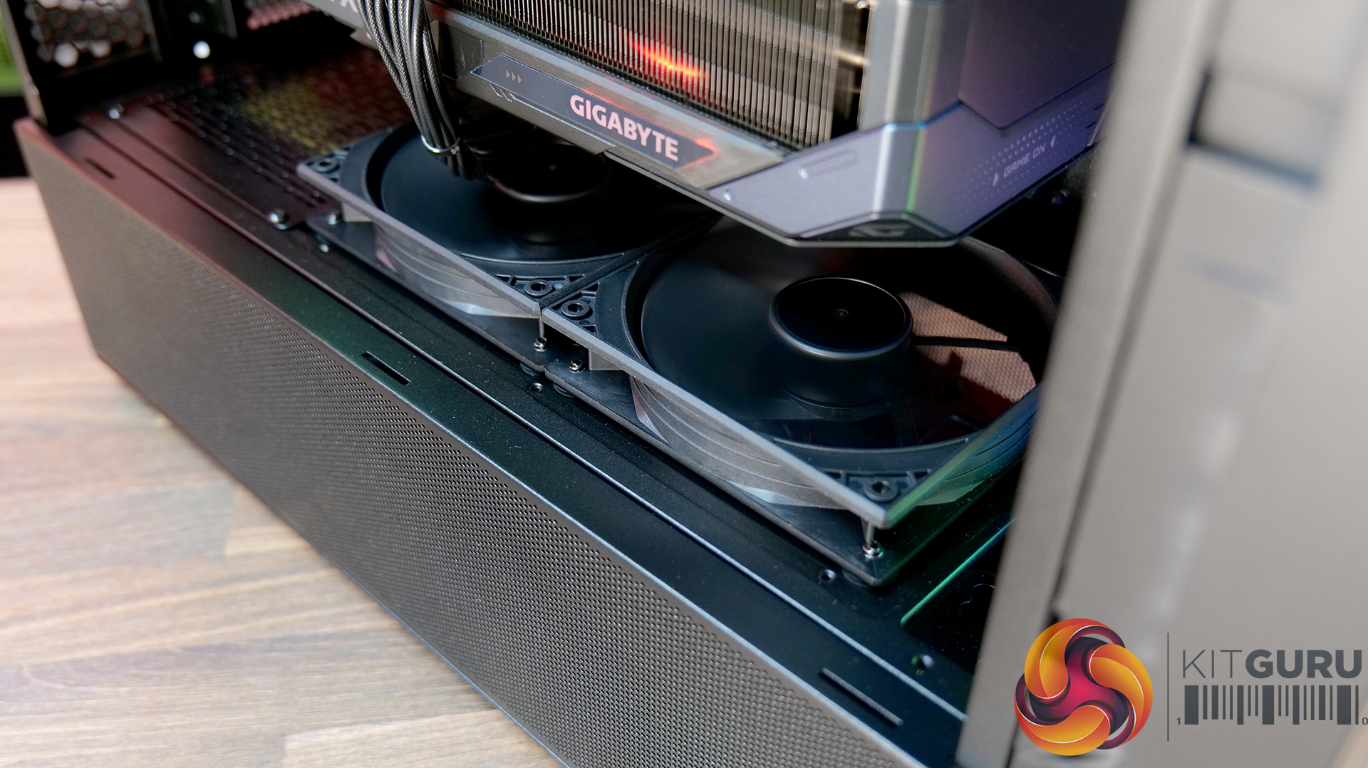 Thermal performance throughout testing was consistently good, with the default configuration handling both CPU and GPU loads without breaking a sweat. The only notable improvement came when adding bottom intake fans, which helped direct airflow more efficiently towards the graphics card. This lined up neatly with the slight reduction in GPU temperatures we recorded. It’s not essential, but adding bottom fans is a small, worthwhile tweak for high-end GPU setups.