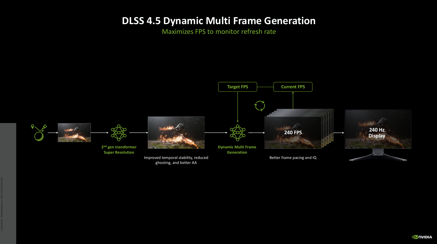 On top of the new transformer model, Nvidia is also bringing updates to Frame Generation. With DLSS 3, Nvidia released Frame Gen 2x, the standard version available on RTX 40 and RTX 50 series GPUs. Then with DLSS 4, Nvidia introduced 3x and 4x modes, exclusively available with RTX 50 series graphics cards. Now, the bar is raising again and Nvidia is set to roll out Frame Generation 6x. With this level of Frame Generation, gamers will be able to max out the refresh rates of 240Hz and 360Hz gaming monitors, which are becoming more prevalent each year, particularly at the moment with the growing adoption of OLED displays.