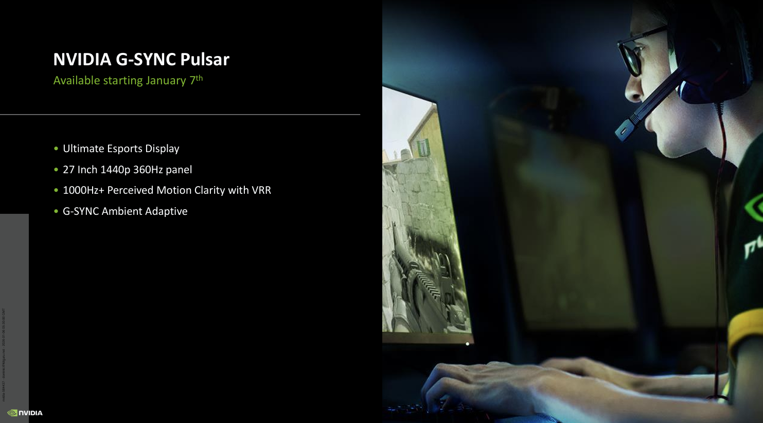 Sticking to gaming, Nvidia is also launching G-Sync Pulsar on January 7th. New displays equipped with this technology will feature QHD resolutions, up to 360Hz refresh rates and offer the equivalent motion clarity to a 1000Hz display with VRR. Nvidia is also introducing G-Sync Ambient Adaptive Technology, enabling the display to dynamically shift brightness based on lighting conditions and the time of day, so you can avoid eye-strain during late-night gaming.