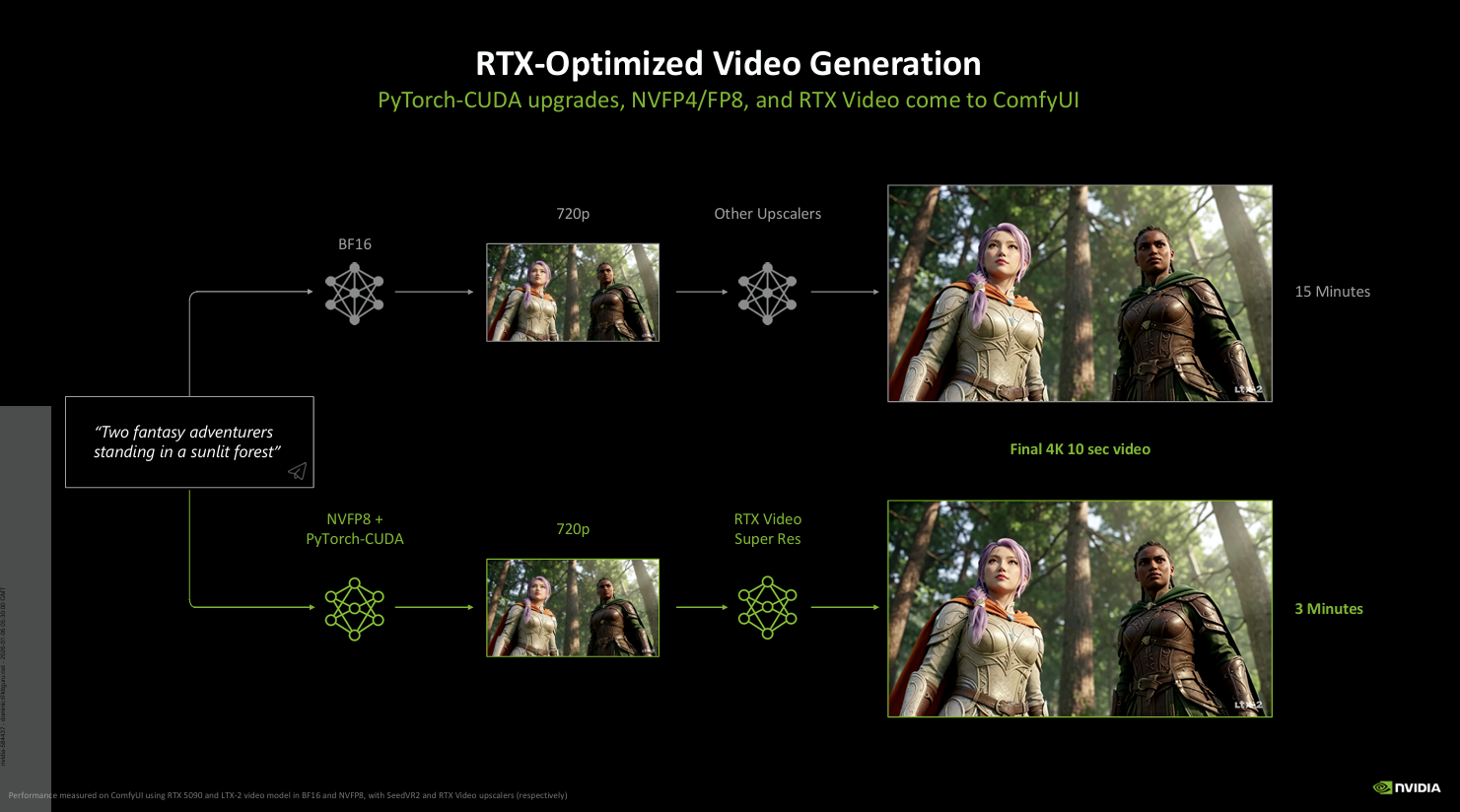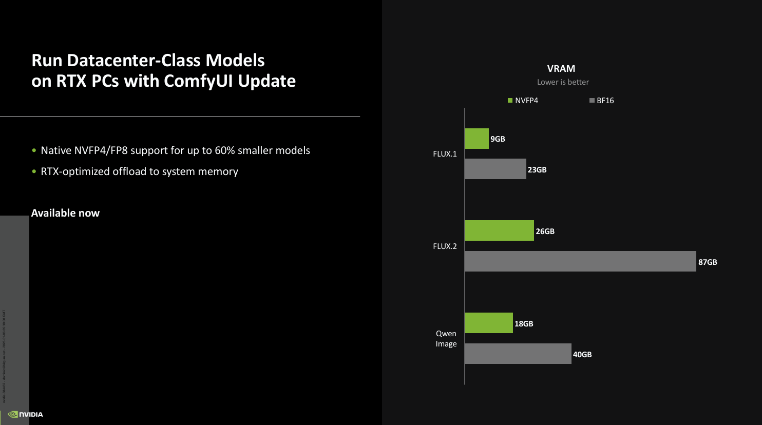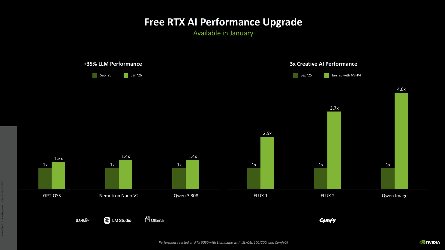 In keeping with the AI theme, Nvidia is also bringing new optimisations to make RTX GPUs more capable when running local AI projects. On an RTX 5090, tools like GPT-OSS, FLUX.1 and FLUX.2 will see performance upgrades. An upcoming ComfyUI update will also enable new optimisations to reduce VRAM usage. Nvidia is also bringing updates to enable private AI video search capabilities and Super Res for generated videos, allowing creators to make crisp 4K videos in seconds.