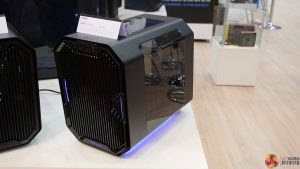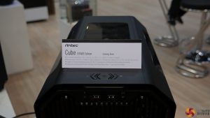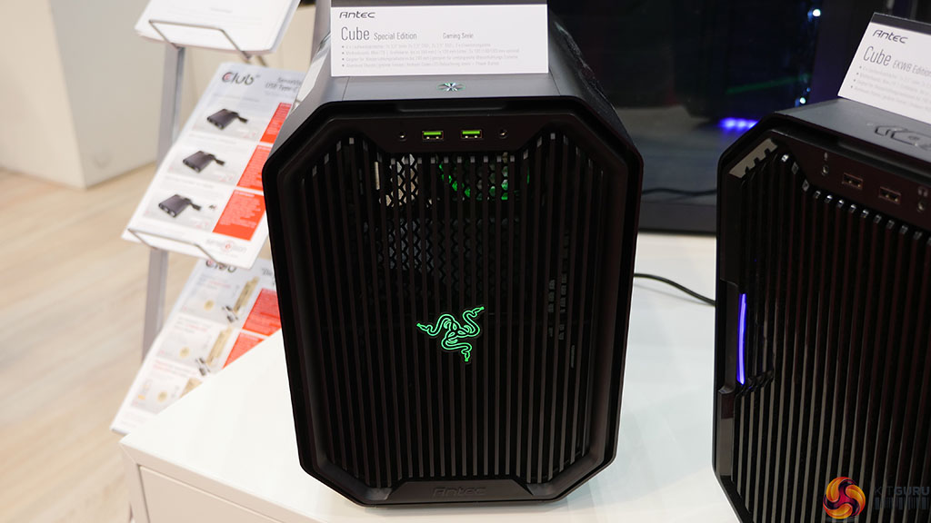 We got a look at two Antec cases at CeBIT. The first is the Cube Mini-ITX chassis, which is available in an EKWB version for liquid cooling enthusiasts. There is also a Special Edition Razer version of this case which you can already order from Overclockers UK.