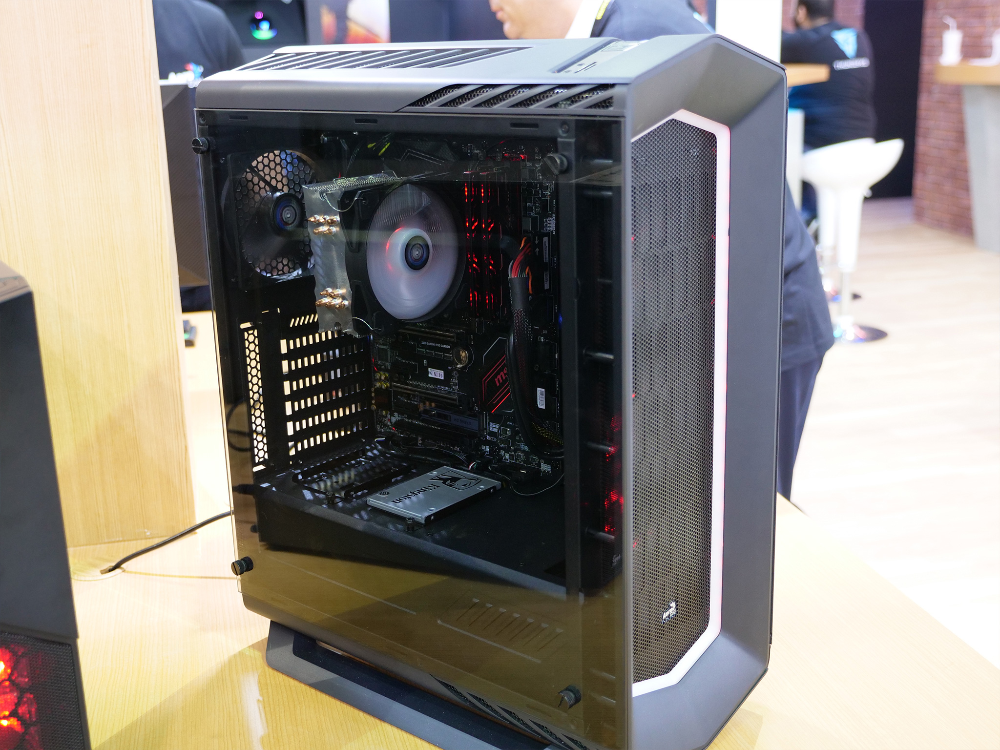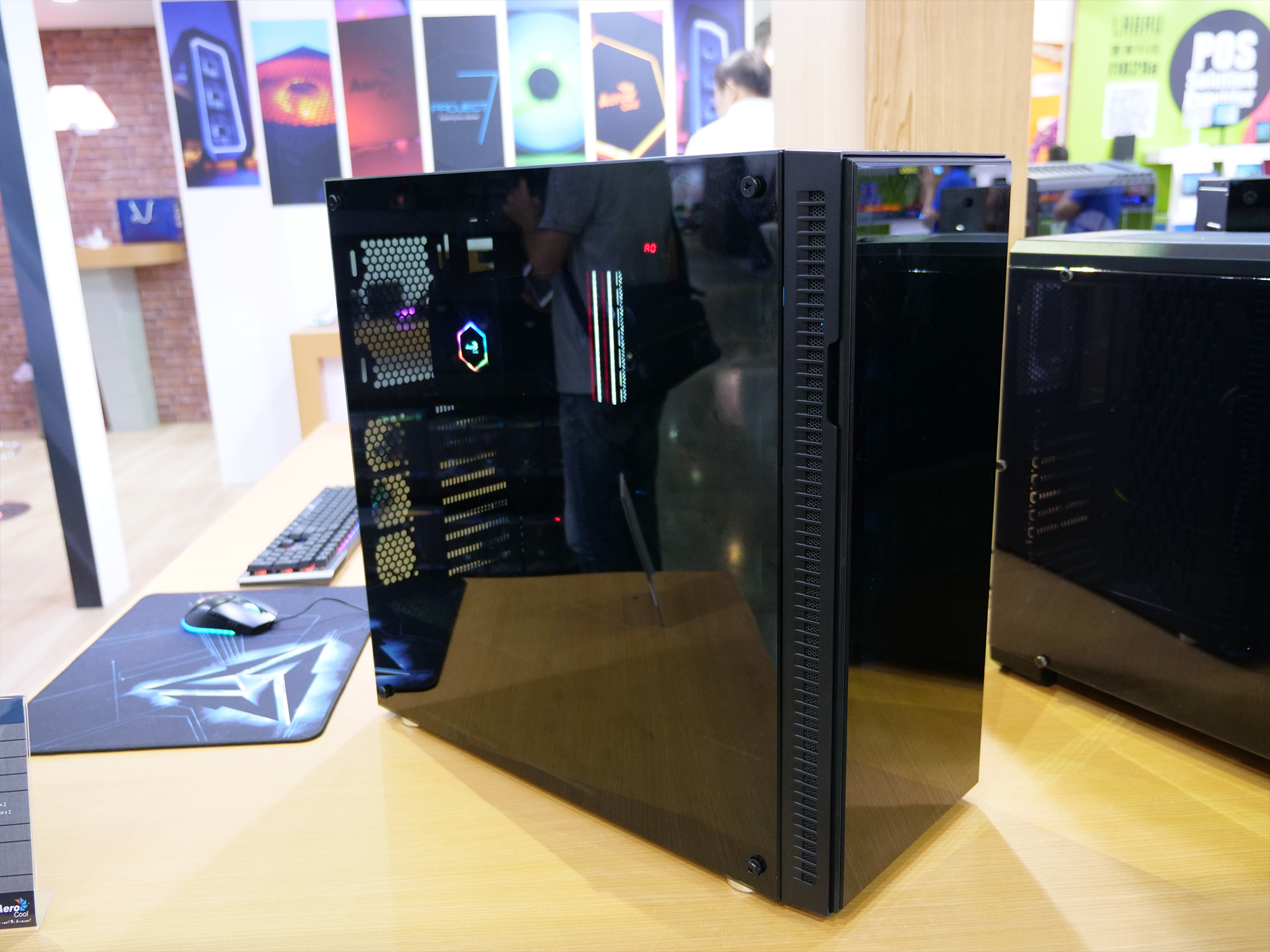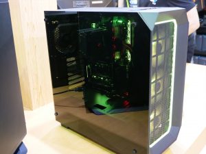 Starting with the cases, we got to have a look the PC-C0 Pro, the P7-C1 Pro and the Quartz Pro. All three are relatively similar with fairly large frames and plenty of tempered glass. The most obvious difference is the fascia design, as the former two cases are a bit more angular, while the Quartz Pro is definitely more subtle.