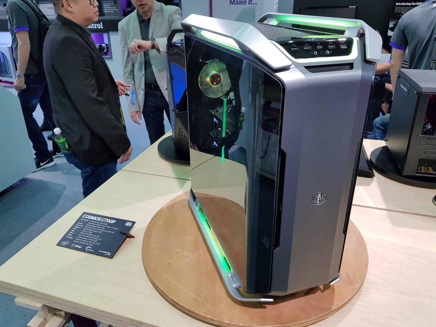 Starting with the new cases, Cooler Master has announced its new MasterCase H500P (formerly the HAF Series) and COSMOS C700P chassis. These are designed to bring the HAF and COSMOS series into the modern age of computing by incorporating glass, acrylic, aluminum, and RGB lighting into the cases. The C700P also sports the classic aluminium handlebars of its predecessors, while users can even remove and rotate the motherboard tray.