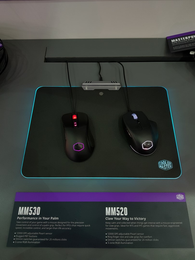 In terms of its peripherals, a lot has been happening here too. The biggest new product is the MasterKeys MK750 keyboard, a flagship mechanical board that sports Cherry MX switches, RGB lighting, a detachable wrist rest as well as a funky RGB LED bar at the front of the board. Elsewhere, two new mice have been introduced: the MasterMouse MM520/MM530. Both are for right-handers and sport Pixart optical sensors. The primary difference between the two is the design, as the MM520 is designed for claw grip users while the MM530 is for palm grip users.